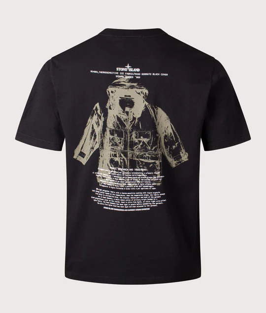 From archive to streetwear. Stone Island’s ‘ARCHIVIO’ T-shirt pairs garment-dyed organic cotton with chest embroidery and a bold back print, making forty years of textile research feel surprisingly easy to wear.